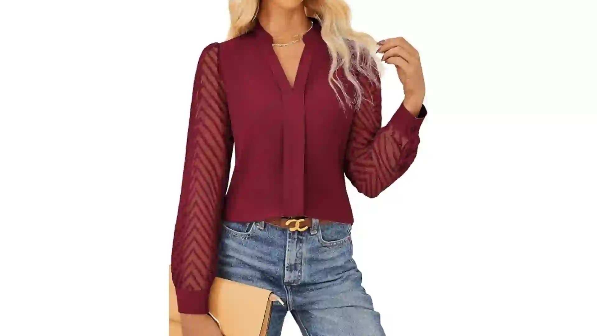 This Grace Karin women’s casual long sleeve blouse can be dressed up or styled down for a more casual look. The lace detail on the sleeve gives off a designer effect without the price tag. You can snag this blouse in many different colors.