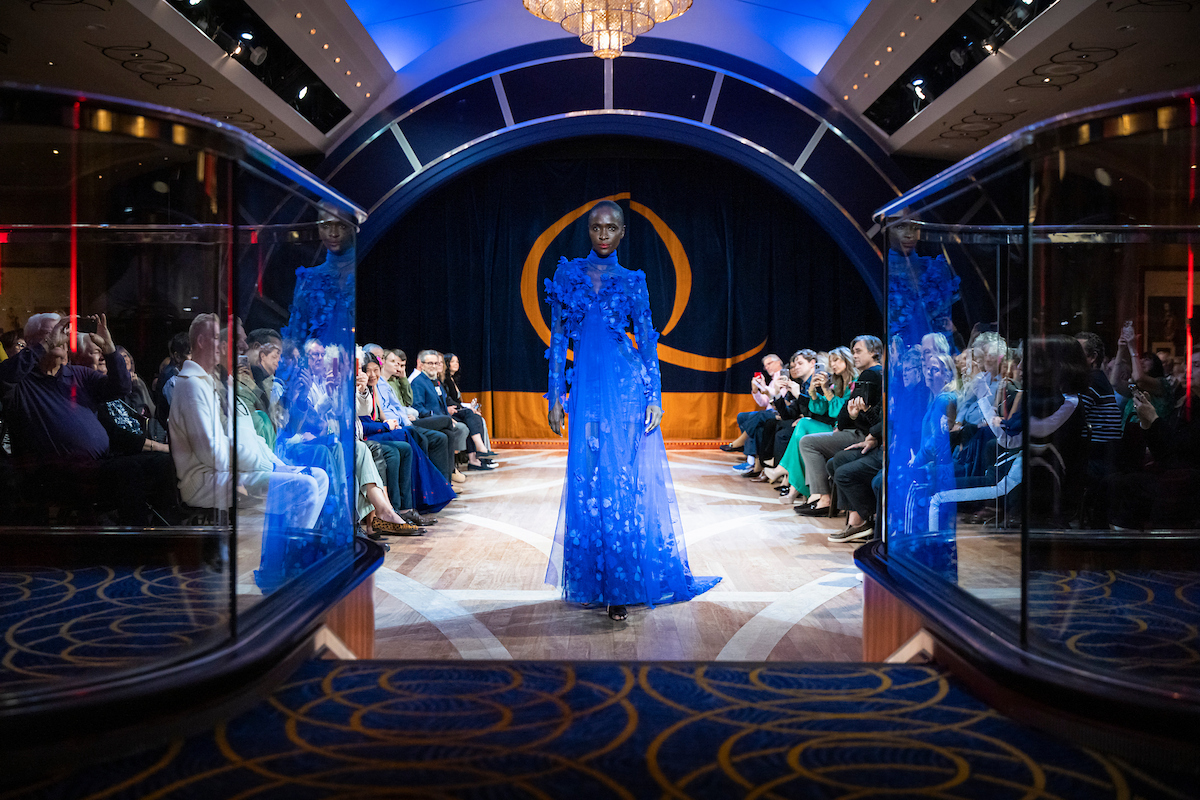 Cunard launched Transatlantic Fashion Week (TAFW) in 2016 with renowned British designer Dame Zandra Rhodes and New York Fashion Week founder Fern Mallis. Rhodes appears in the 2023 HBO film, Donyale Luna: Supermodel, the story of the first Black woman on the cover of Vogue. In the film, Rhodes remembers how the Detroit-born Donyale took London by storm, even having department store mannequins fashioned in her likeness.