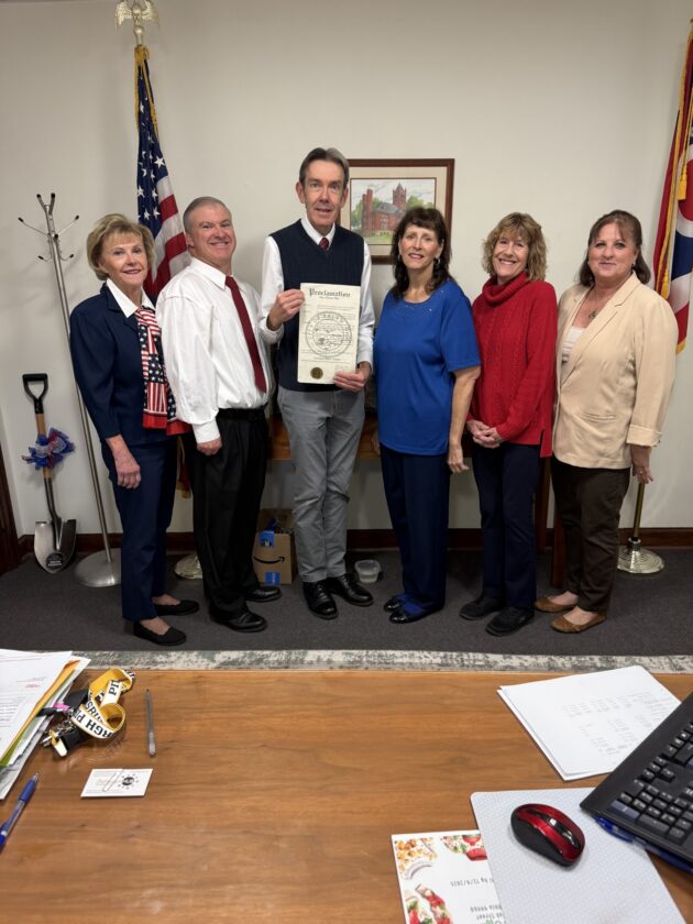 Mayor Cyndi Baronzzi Dickey and the members of the Salem Music Club officially marked November as American Music Month in the city of Salem with a mayoral proclamation Friday. In keeping with the goals of the National Federation of Music Clubs to promote American Music the club will stage its annual Parade of American Music throughout November. The Salem Music Club will hold a program featuring the music of American composer Alan Menken, presented by Salem Music Club President Mike Newman and Program Chairman Deann Wennerstrom at 7 p.m. on Nov. 19 in the parlor of the Emmanuel Lutheran Church educational building. This will be followed by a Festival of Choirs will at 3 p.m. November 30th at the Salem First Methodist Church. Shown from left are Salem Music Club Treasurer Ruth Newman, President Mike Newman, Program Chairman Dean Wennerstrom, Secretary Anna Anderson, Vice President Karen Culp, and Mayor Cyndi Baronzzi Dickey. (Submitted photo courtesy Cyndi Baronzzi Dickey)