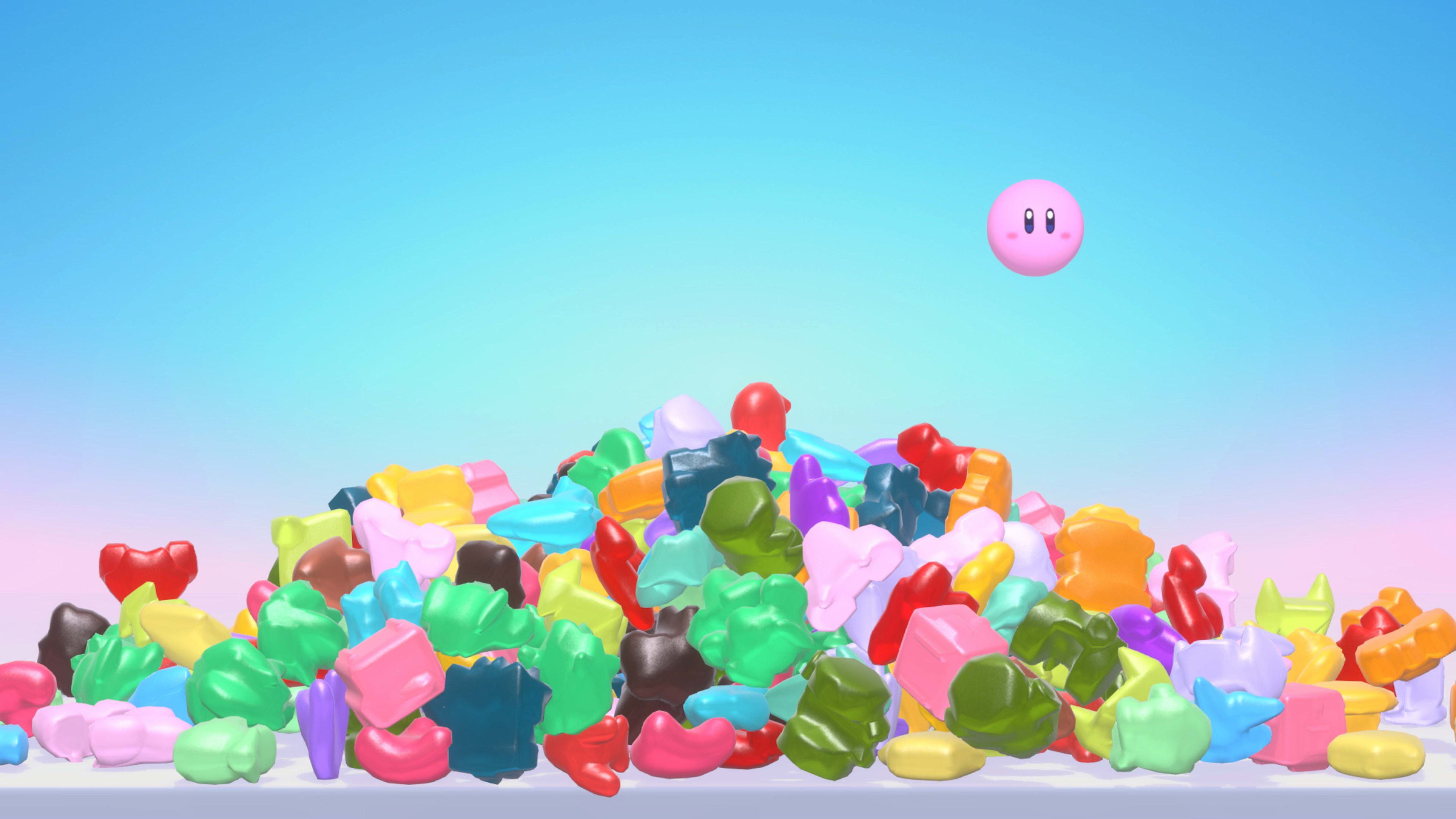 I had thought about having a big pile of the machines of defeated opponents in some form, but making them into Gummies had nothing but upsides. We could simplify the designs, choose the colors freely, Kirby pairs well with food thematically, and I felt like the tactile feel would make a good impression too.