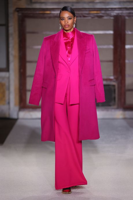Sergio Hudson closed his show on Friday night with Aretha Franklin’s 1998 performance of “Nessun Dorma,” from the opera Turandot. The designer is marking his 10th anniversary, so a little grandeur was in order. Though some of the models had trouble slowing their walk to the prescribed salon-style pace, it didn’t really matter. The clothes—the many well-cut pantsuits and fitted dresses in graphic patterns or rich colors like deep raspberry—did the talking. It was a stellar display of Hudson’s brand of glamour.