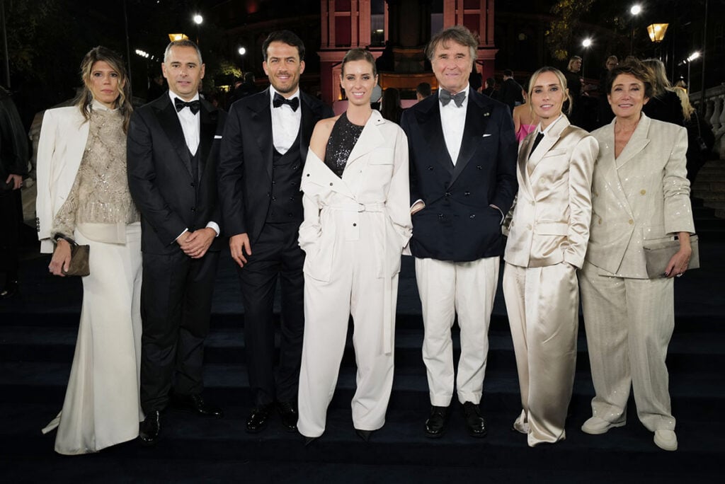 Poppy Delevingne chose a sequinned Brunello Cucinelli gown that glistened under the Royal Albert Hall lights. It’s the most traditionally “red carpet” of the Cucinelli looks, but still unmistakably his — soft, glimmering, calm.