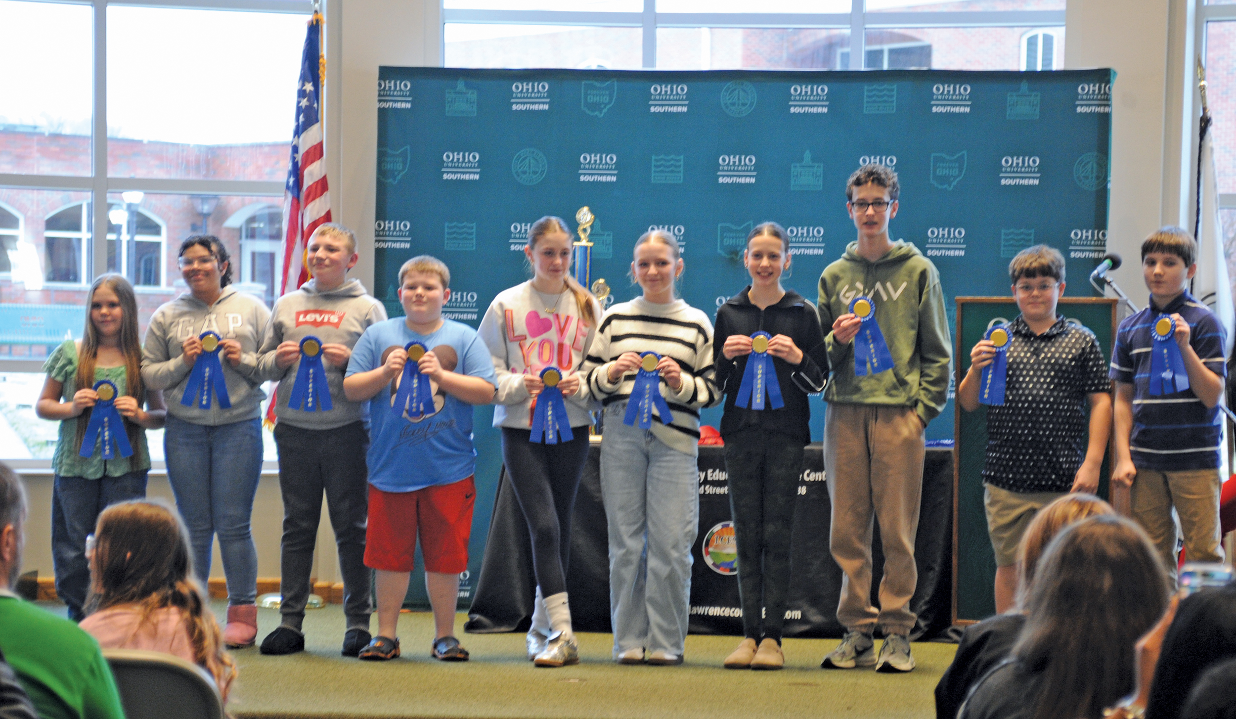Students who received a Superior rating in the Lawrence County Science Fair are honored at an awards event at Ohio University Southern on Tuesday. (Heath Harrison | The Ironton Tribune)