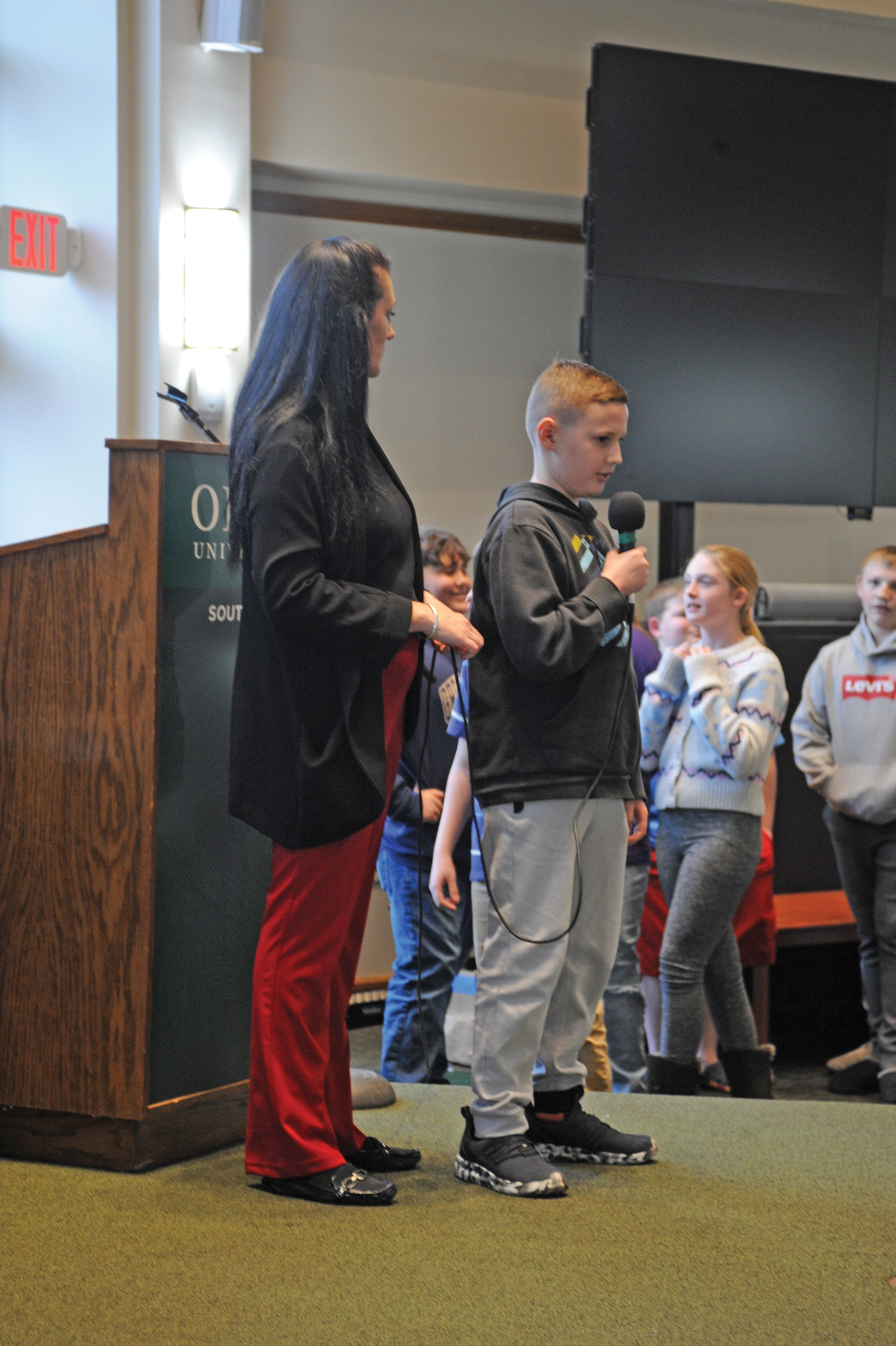 Lawrence County ESC student services coordinator Gretta Taylor had each science fair winner introduce themselves and talk about their project at an awards event at Ohio University Southern on Tuesday.