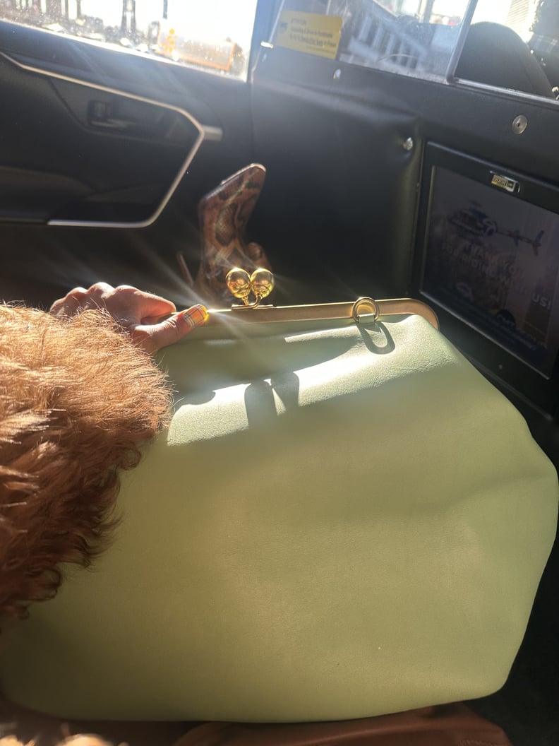 The Coach Kisslock Frame bag is ludicrously capacious in the best way, to quote “Succession.” In fact, after the fashion show, I switched to flats and was looking for a tote to carry my knee-high boots. Imagine my surprise when they actually fit in the Frame bag — that’s how roomy it is.