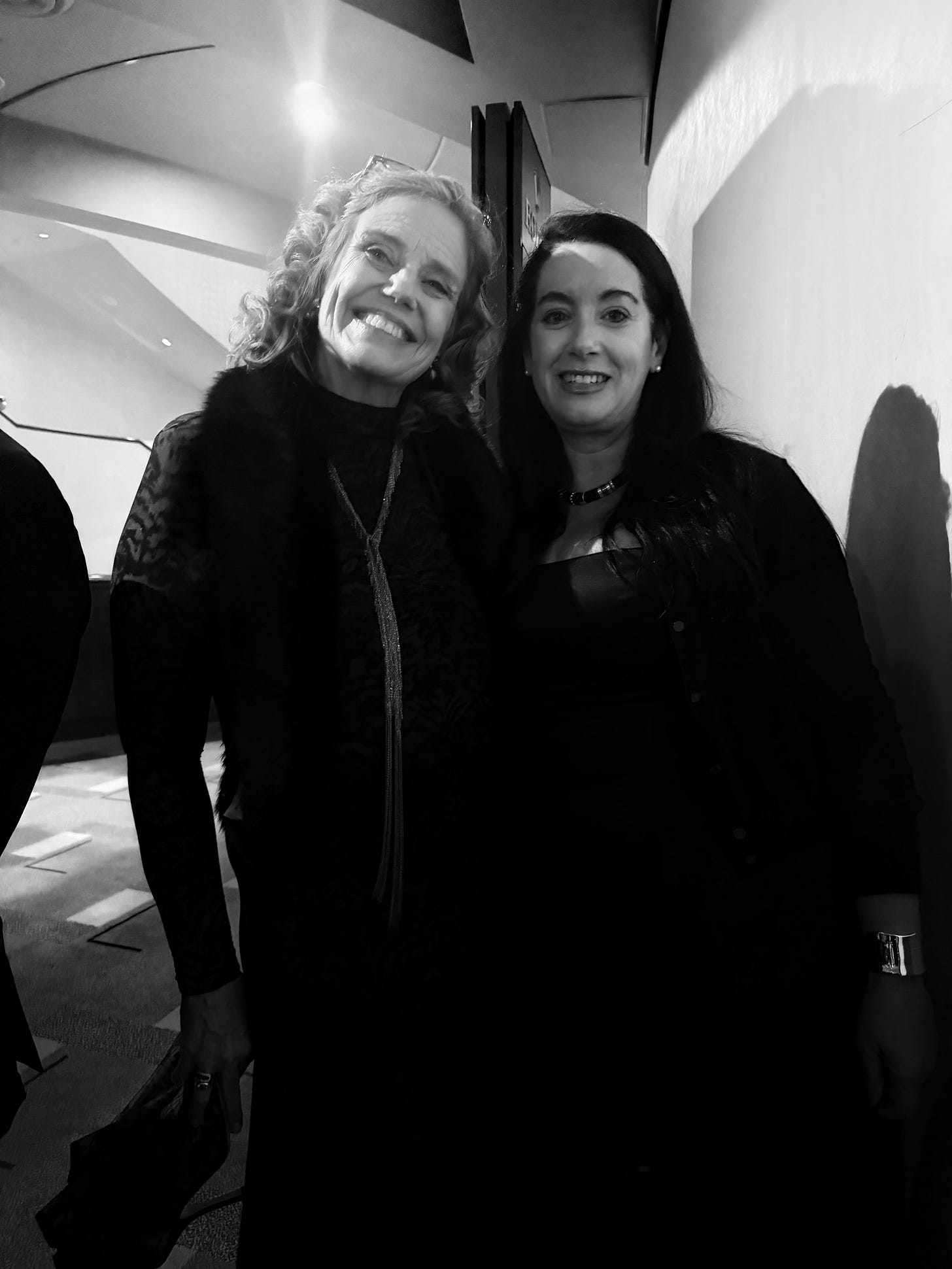 Sigourney Weaver and Bergman look ready to make a prayer to Eywa. (This is an Avatar joke.)