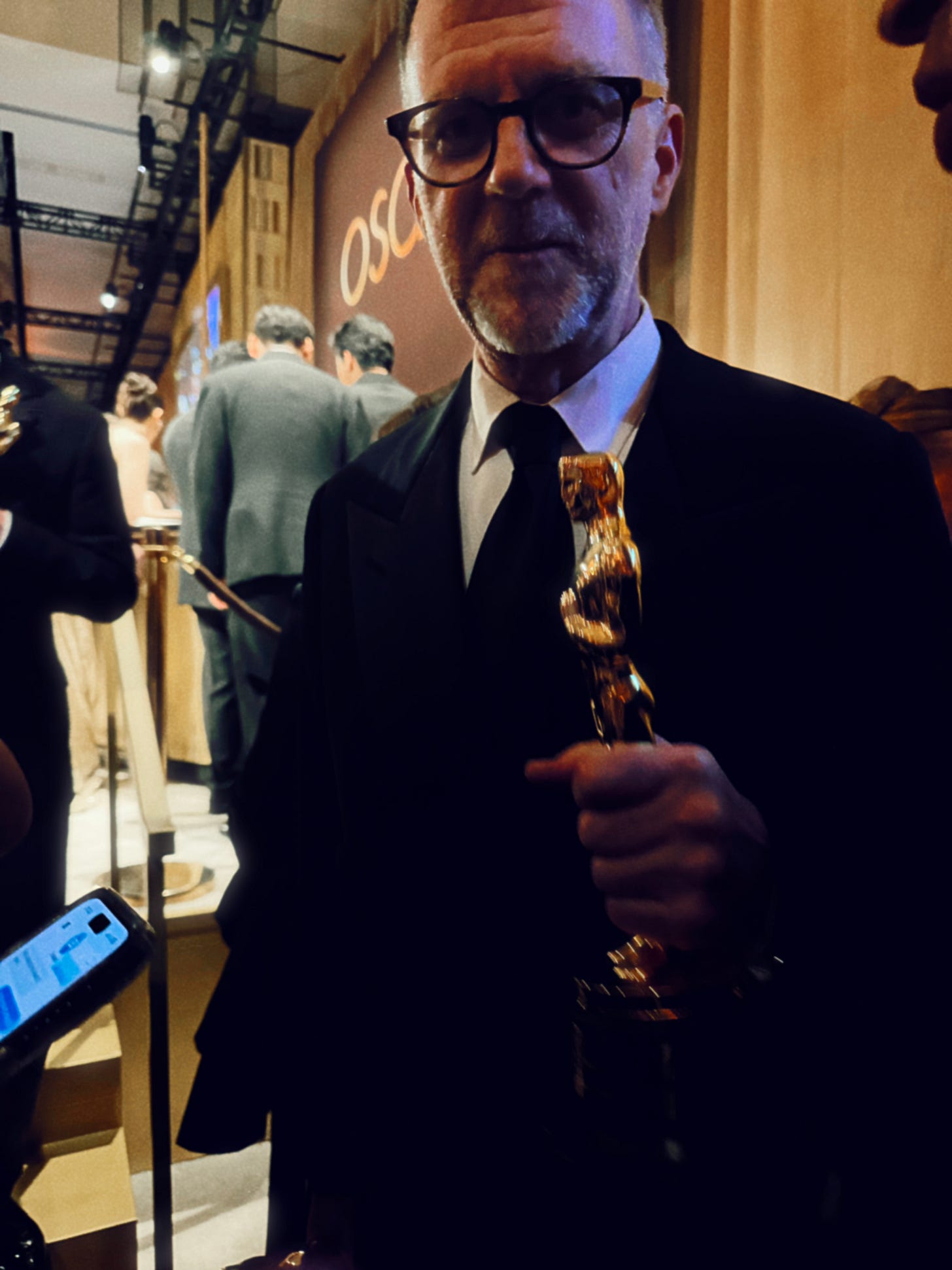 Paul Thomas Anderson holds one of his three Oscars.
