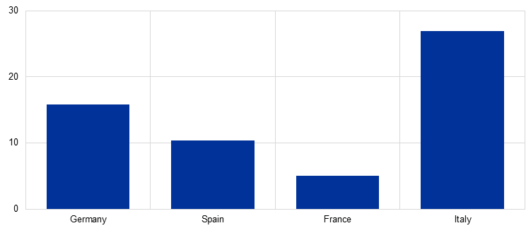 Notes: Non-euro area holders include investors outside the euro area. The chart depicts information for Germany, Spain, France and Italy.