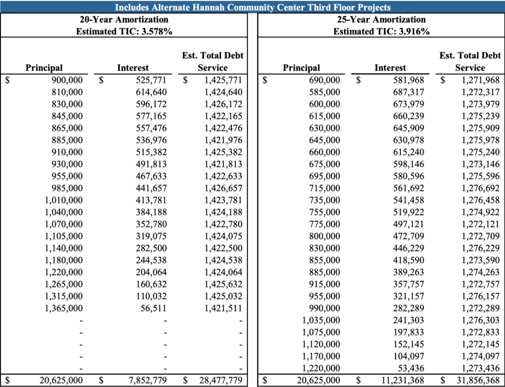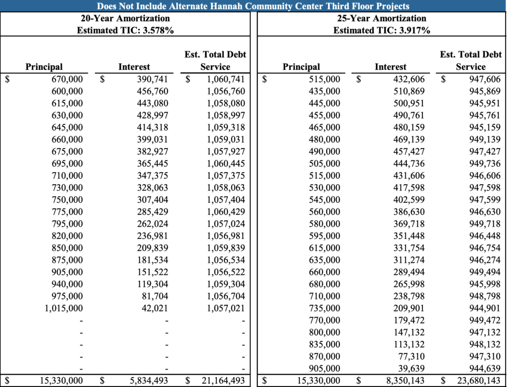 The facility improvements would be paid for using a 20 or 25-year bond. Paying for the improvements through a bond would spread the cost out over decades, but add millions in interest payments.