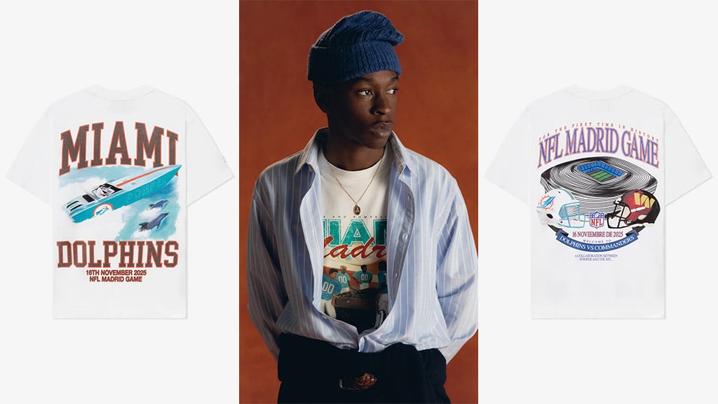 Pompeii’s latest lineup didn’t come to play. In honor of the NFL’s first-ever match in Madrid, the European brand is teaming up with the Miami Dolphins to create apparel and accessories that celebrate the sport in style.