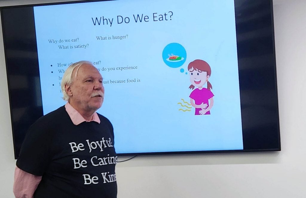 Associate professor William Kuehl asked attendees if they ate three meals a day. Not everyone’s hand shot up.