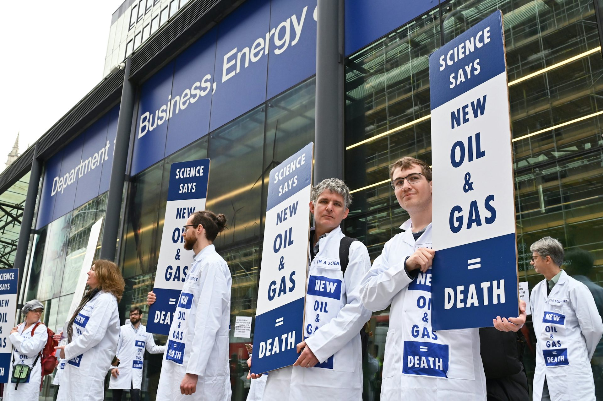 Scientists for Extinction Rebellion protesting at Department for Business, Energy, and Industrial Strategy in 2022. Andrea Domeniconi, CC BY-NC-ND