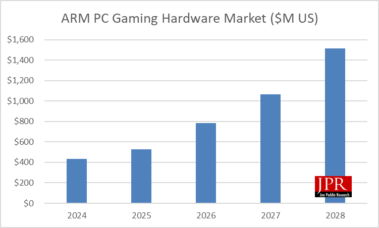 Jon Peddie Research has released its 2H 2025 PC Gaming Hardware model, which now includes Arm PCs.