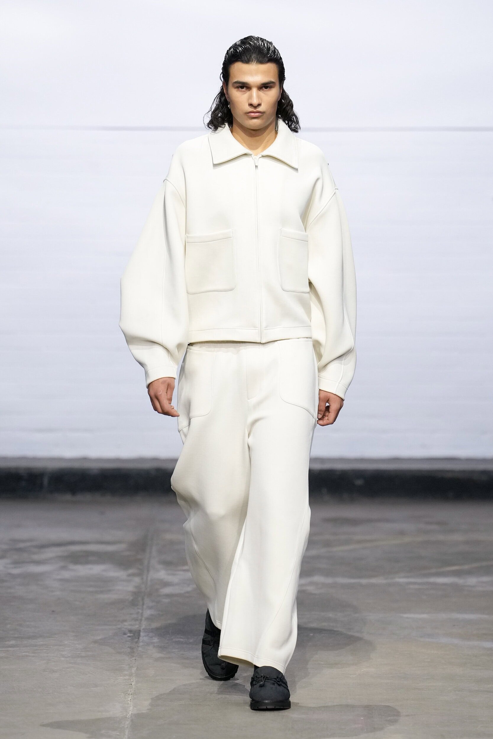 As one of the few brands catering to this customer Vitto, in partnership with the BFC NEWGEN sponsor Pull & Bear, will make a portion of the collection see-now, buy-now extending the size offer for the retail store up to 2XL. This is the through-line of intentional accessibility that other brands should follow. As has been the case in the past when a single curve model will feature in a show (many times styled in a knit or jersey look) communicating that a brands collections are accessible to all. Only for customers to be met with disappointment when store buys don’t extend past a medium. This season saw a first foray into the menswear category with a set of looks encompassing relaxed sweats and a twisted take on a tailored suit whose hem was skewed with the designers signature metal trim. A promising start that could elude to the designer future ambitions – to tackle the need for representation during mens fashion week, we can only watch and wait in anticipation.