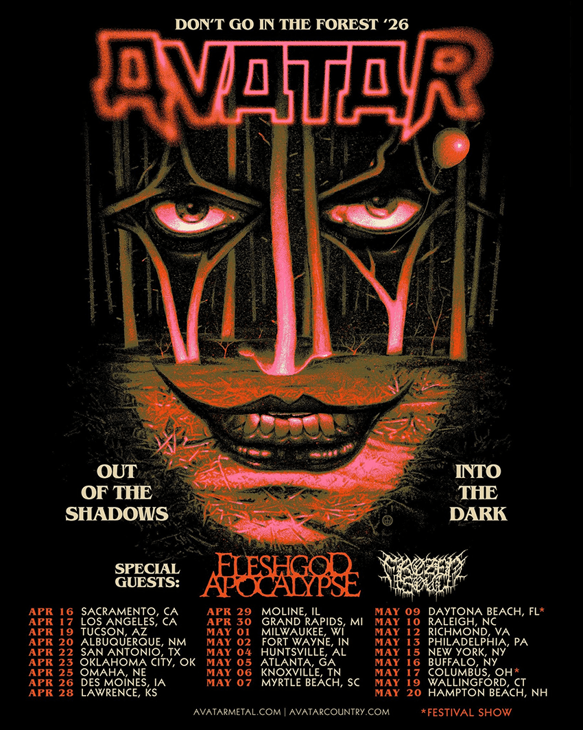 Tickets for the Don’t Go in the Forest ’26 Tour featuring Avatar, Fleshgod Apocalypse and Frozen Soul can be purchased here.
