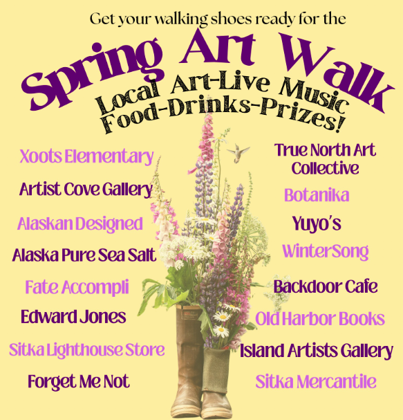 Promotional image featuring the businesses participating in the Spring Art Walk 2026 (courtesy of Sitka Arts Council)