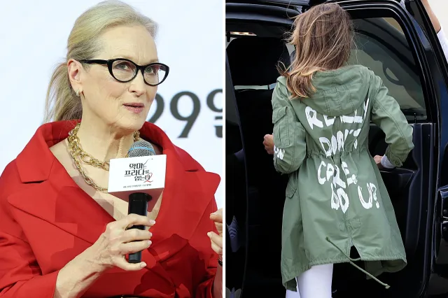 For Streep, clothing worn by women in power often cannot be separated from its context—particularly when moments are already politically charged. She pointed to one outfit in particular, the jacket Melania Trump wore in 2018 when visiting migrant children who had been detained. The slogan printed on the coat, Streep said, carried meaning beyond personal expression. The jacket inspired much debate and discussion at the time.