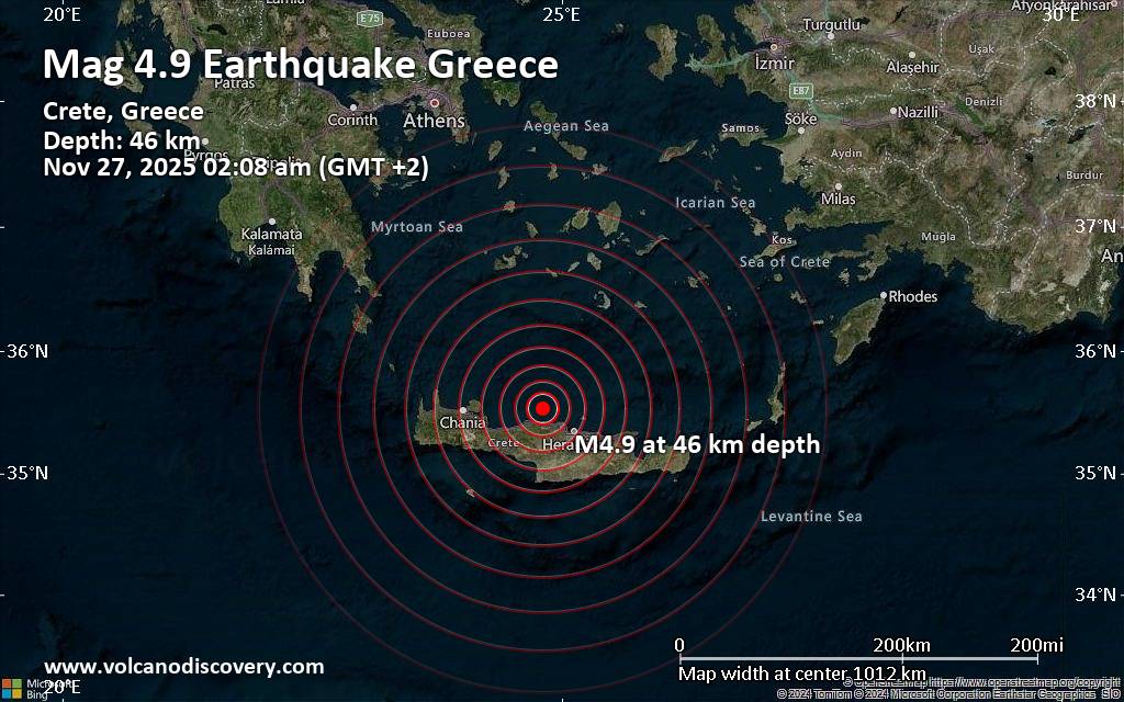 According to the European-Mediterranean Seismological Centre (EMSC), the quake hit on Thursday, November 27th, 2025, at 2:08 am local time at a moderately shallow depth of 46. km. The exact magnitude, epicenter, and depth of the quake might be revised within the next few hours or minutes as seismologists review data and refine their calculations, or as other agencies issue their report.