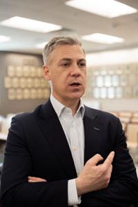 Indiana Senator Jim Banks speaks on his trip to Purdue Wednesday afternoon at the press event after the NIH Director Fireside Chat.