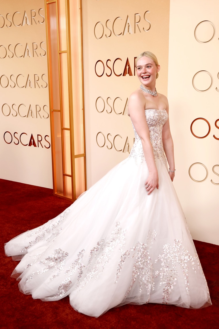 Paige appreciates Elle Fanning’s stunning nod to bridal couture with her ensemble.
