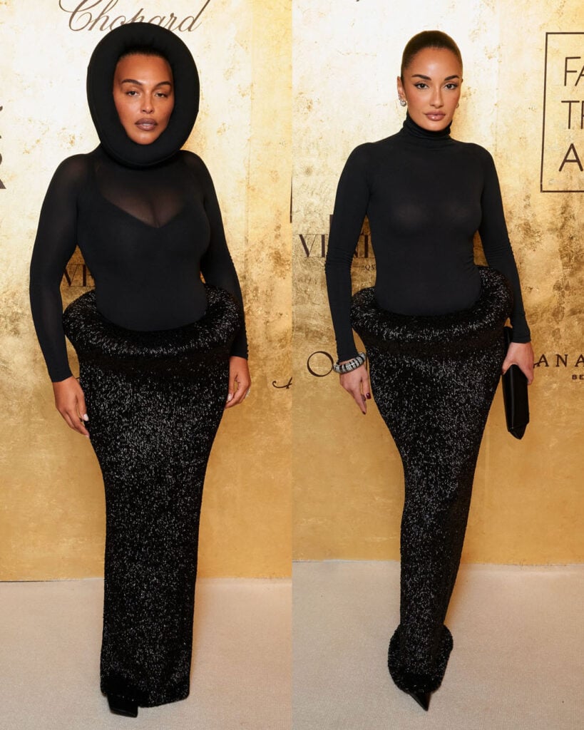 There’s a long-standing red carpet myth that two celebrities wearing the same designer look to the same event is a disaster waiting to happen. But at the Fashion Trust Arabia 2025 Awards Ceremony, Paloma Elsesser and Amina Muaddi proved that the opposite can be true — especially when the shared item is an Alaïa Fall 2025 black sequin-embroidered padded skirt.