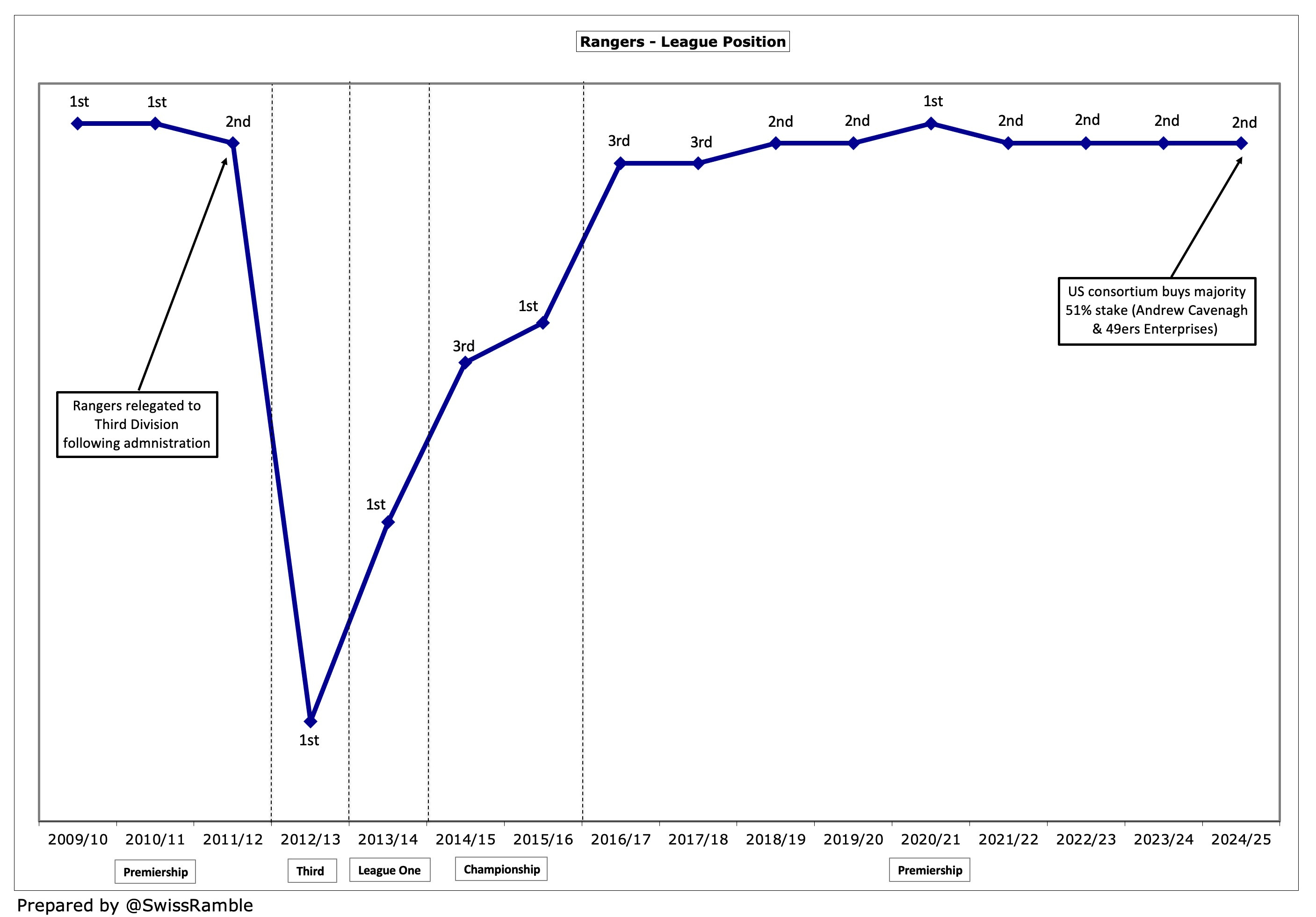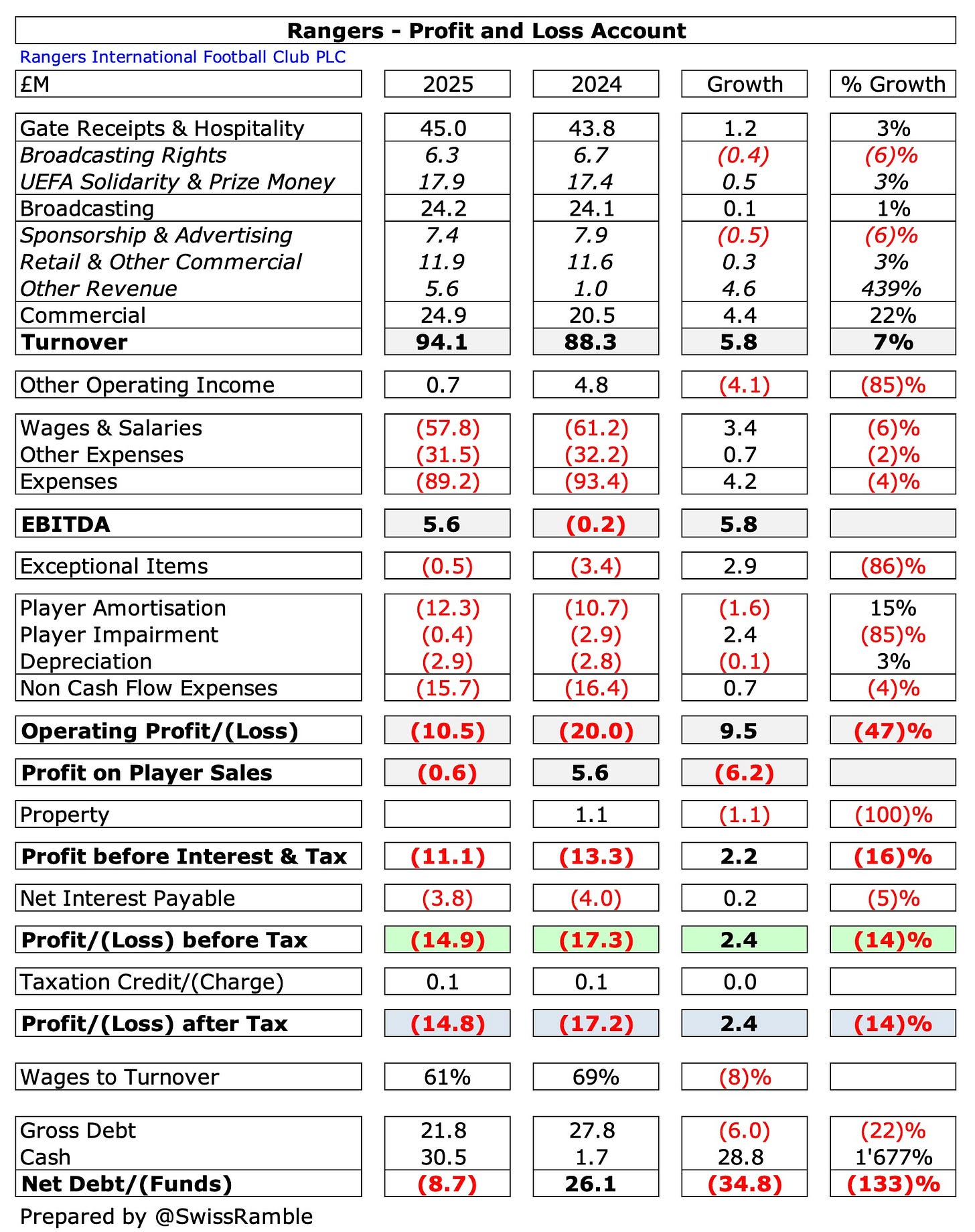 Let’s dig into the recently published accounts for 2024/25, which cover a season when Rangers once again finished as runners-up in the SPFL Premiership behind Celtic, for the fourth year in a row.