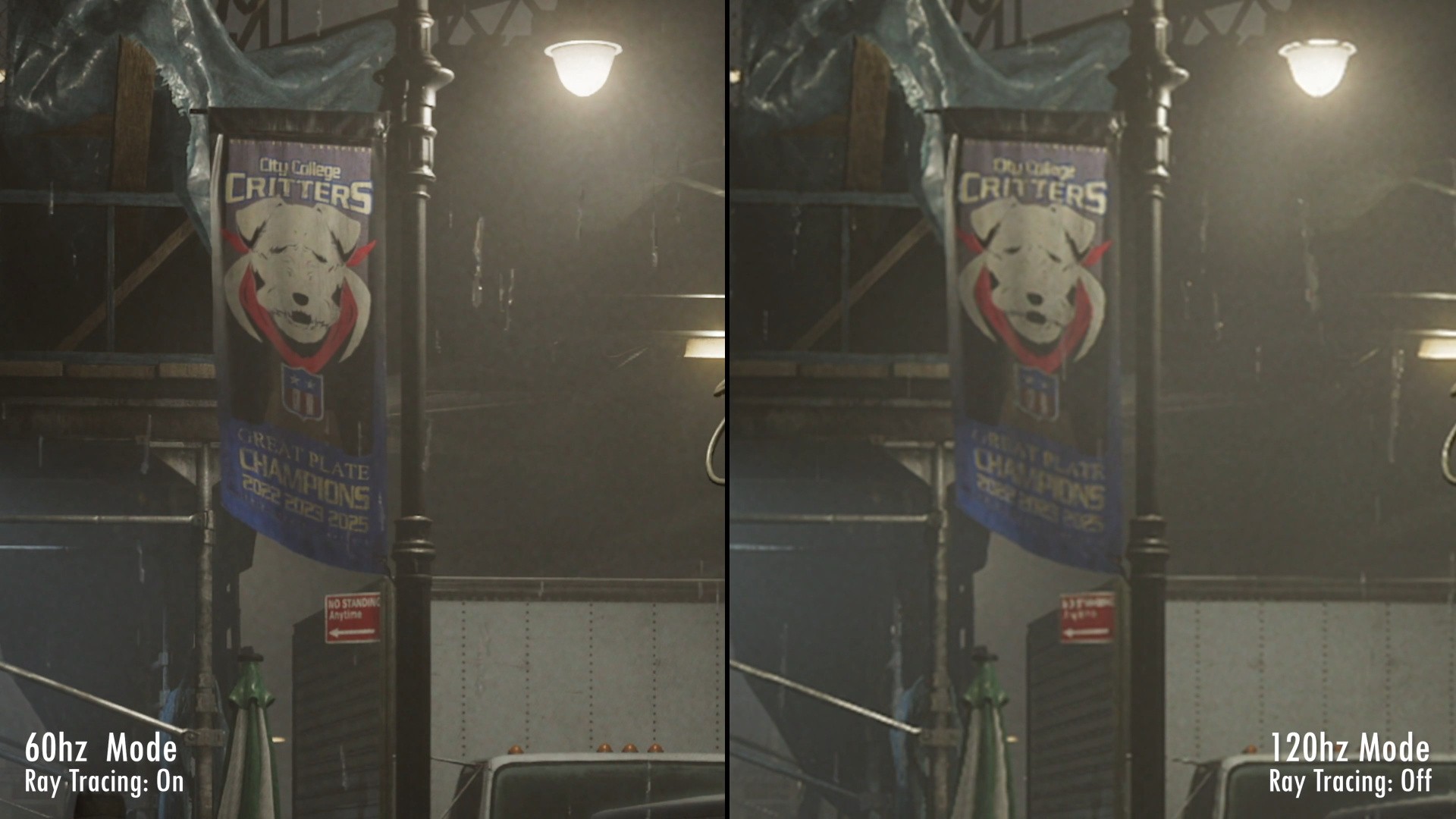 While some low-resolution reflection noise and denoising artifacts are occasionally visible, the enhancement is clear. The 120Hz mode doesn’t just disable RT, it disables the upscaler too, leaving you with a far less impressive spatial scaler, which looks a lot like the PC version running with FSR1. Performance on the 120Hz mode isn’t perfect, but it’s consistently high, with the game supporting proper VRR – so it basically always looks smooth if you have the appropriate display.