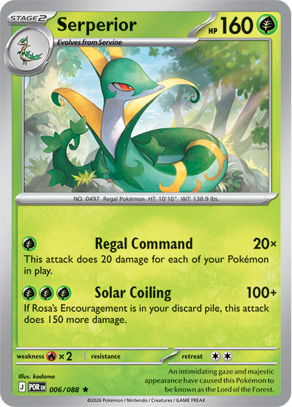 , but 150 more damage when Rosa’s Encouragement is in the discard pile. Rosa and Serperior have always been an iconic duo, and you won’t be surprised to see that Rosa’s Encouragement has some additional synergy with this fully evolved first partner Pokémon.