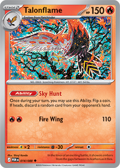 Shinji Kanda stuns us again with a gorgeous rendition of Talonflame, flapping its wings among both flora and flame. Its Sky Hunt Ability is a heater too, allowing you to burn a card in your opponent’s hand if you’re lucky on a coin flip.