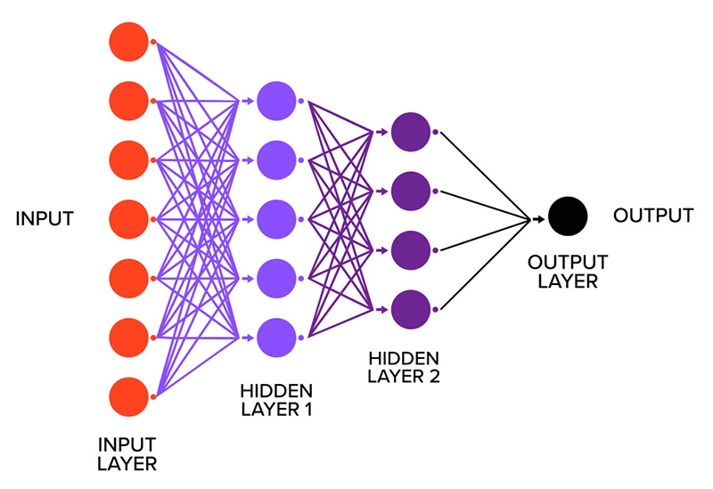 SOURCE: “Neurons Transmit Messages In the Brain,” University of Utah, https://learn.genetics.utah.edu/content/neuroscience/neurons/ (top); “Deep Learning vs. Neural Network: What’s the Difference?,” Smartboost, https://www.smartboost.com/blog/deep-learningvs-neural-network-whatsthe-difference/ (bottom).