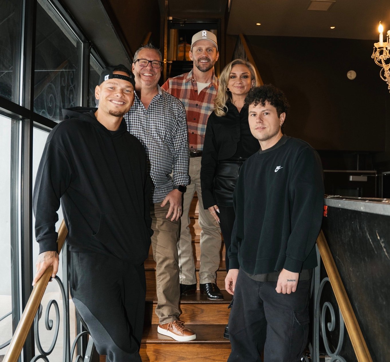 Pictured (back row): Rusty Gaston, (CEO Sony Music Publishing Nashville); (middle row, L-R): Kent Earls (Partner Verse 2 Music), Nikki Boon (Manager, Neon Coast); (front row, L-R): Kane Brown and Jonny Capeci. Photo: Riley Mays