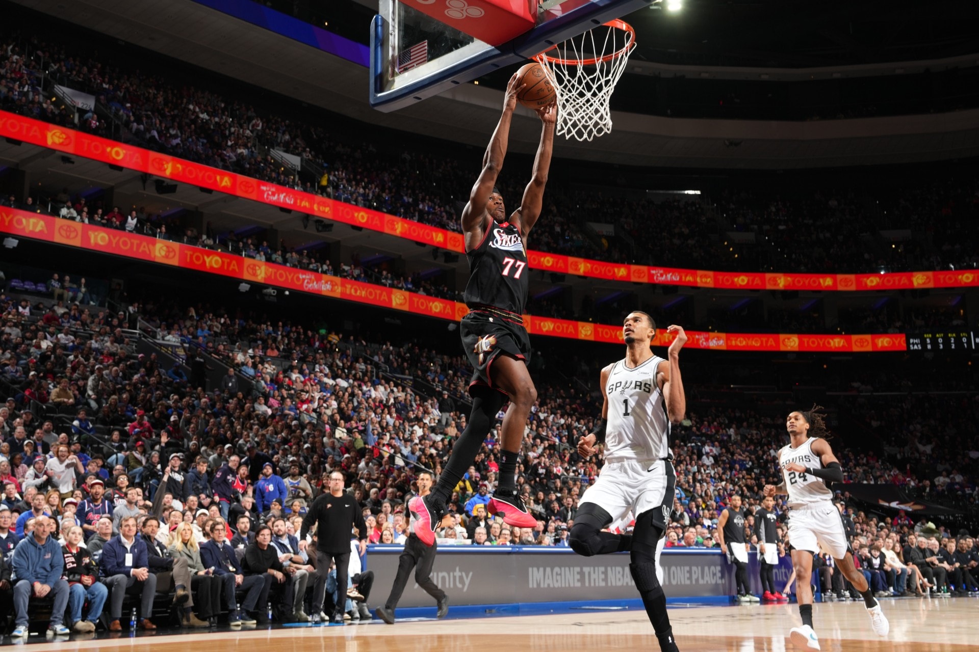 PHILADELPHIA (AP) — VJ Edgecombe was ruled out for the rest of the game with lower back soreness after the 76ers’ star rookie suffered a hard fall in the first half against San Antonio.