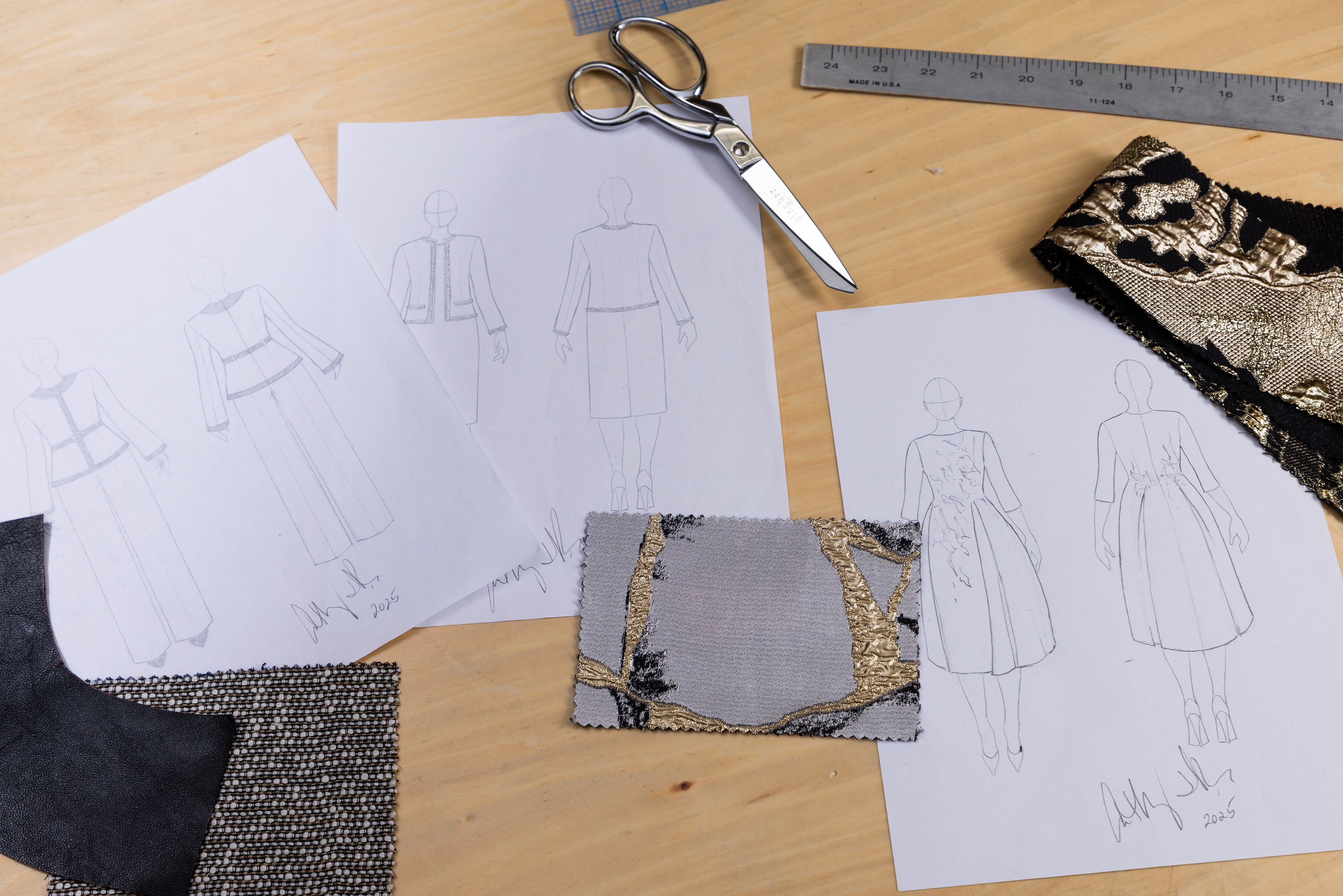 “The process started with developing a series of sketches,” said Wilson. “We picked fabric swatches together, then I took measurements, made prototypes and went through a series of fit corrections to create the final pieces.”