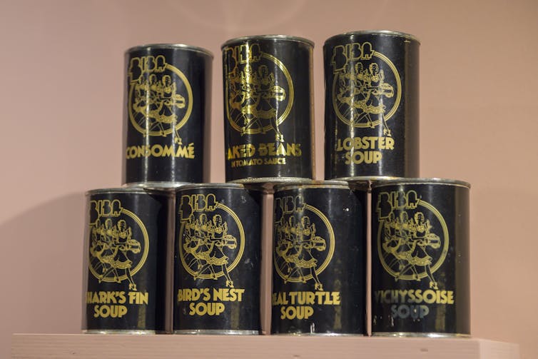 The exhibition’s collective energy conveys the essence of the Biba aesthetic – it wasn’t just about the clothes, it was a whole lifestyle. Beautifully curated cases of Biba products, from cosmetics to tinned food to matches and branded wine, reveal how Biba was one of the first high street brands to offer more than clothes. Here was an accessible, glamorous and perhaps more indulgent lifestyle to the masses, especially uplifting in a drab post-war Britain.