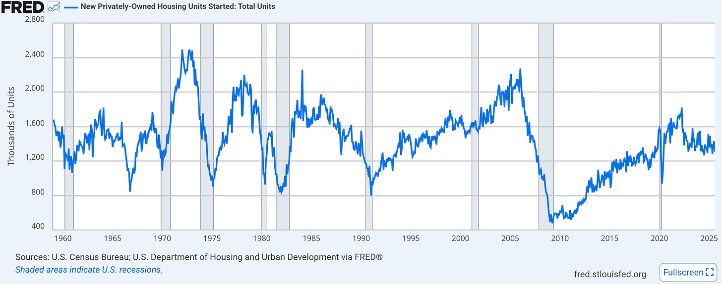 1. The US population has almost doubled since 1960. How have annual housing starts changed since 1960?