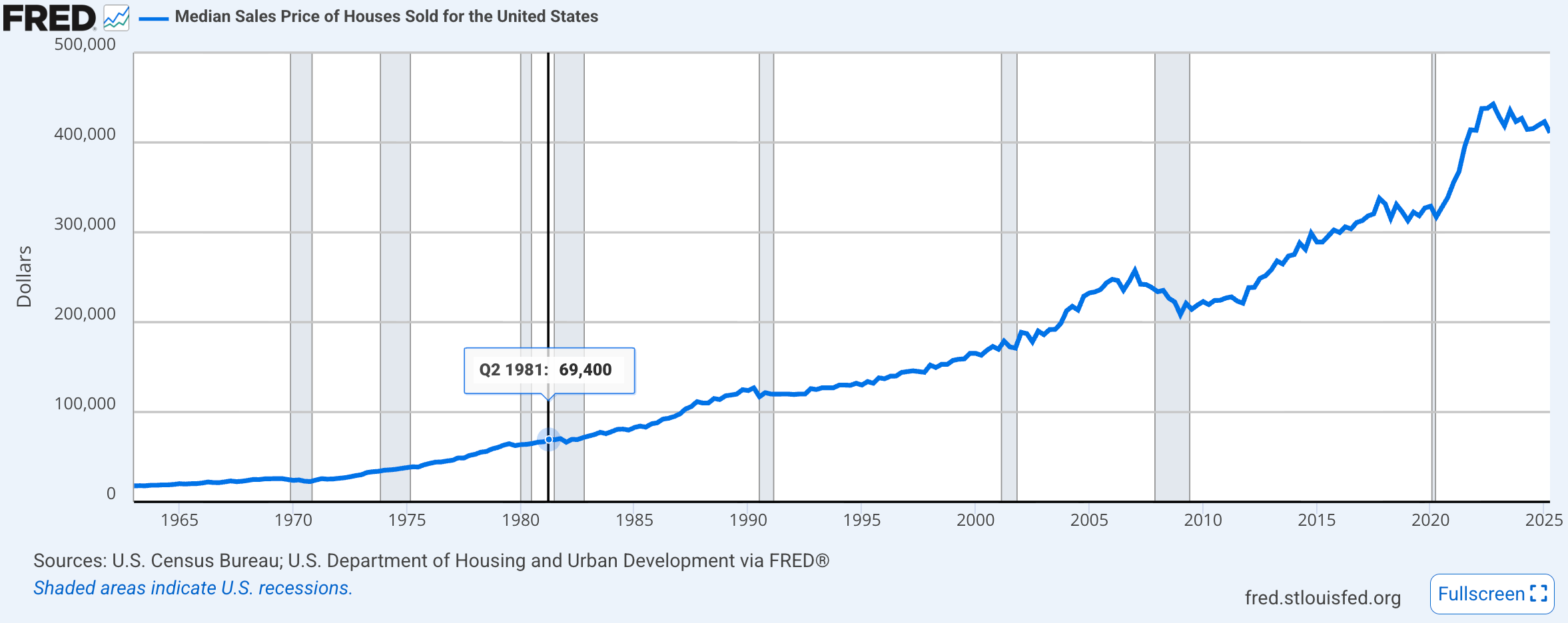 The Real median US house price has roughly doubled since the early 60’s. The nominal median home price rose by a factor of 23, while prices, in general, rose by a factor of 10. Thus, buying a home is now twice as expensive — compared with buying everything else — than was the case six decades ago. Or is it? Square footage per person in owner-occupied homes has also roughly doubled. So, the apparent doubling in the relative cost of a house may simply reflect the fact that Americans are demanding larger square footage. This is partly due to many people living in large homes built years, if not centuries ago, for large households when today’s households are much smaller. But it’s also due to the construction of larger homes. So comparing “the” median price of a house today and that of a house 65 years ago is largely comparing apples to oranges.