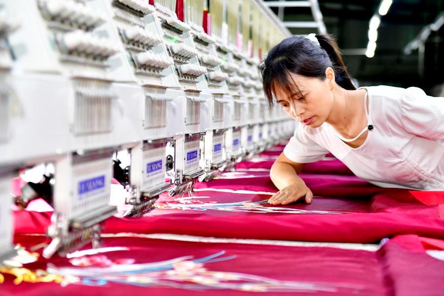 JINAN, March 13 (Xinhua) — At 6:30 a.m., while most villagers are still in their slumber, a two-story building bursts into life with the rhythmic sound of sewing machines humming through the windows. Wei Ping’an stands among rows of dresses illuminated by the soft morning sunlight, ready for another busy day.