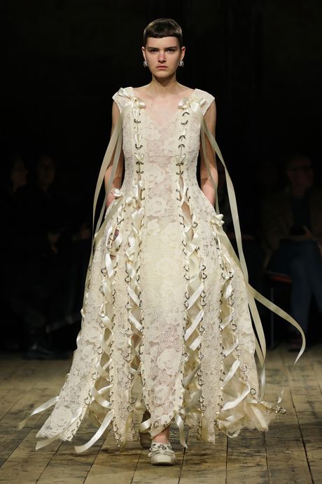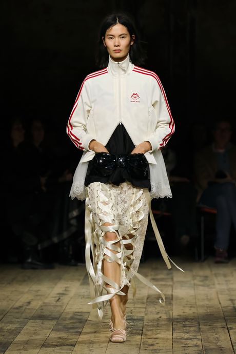 She’s been declared, among other things, one of the pinnacle designers creating feminine clothing, though she’s often caveated that attribution by noting there is no singular way to present femininity. It’s something especially palpable in her recent collection, which she showed this Sunday. Where there are ribbons and sequins and frill, there is also rugged tweed and cargo greens and sporty bombers (part of her forthcoming collaboration with Adidas). There’s a sense of collision, tension and surprise, which perhaps is what makes her clothing feel inherently feminine rather than all the external bells and whistles we associate with womanhood.