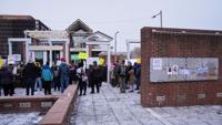 Demonstrators gather Feb. 10 to protest removal of explanatory panels that were part of an exhibit on slavery at the President’s House Site in Philadelphia.