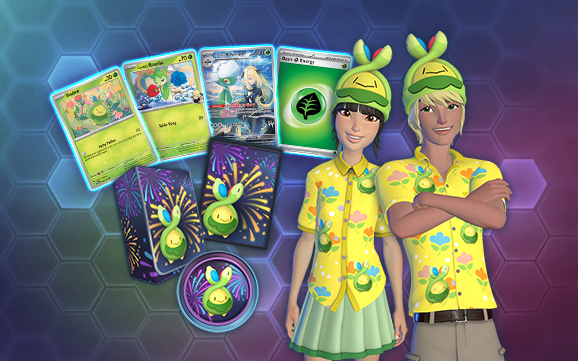 To celebrate Budew’s grand accomplishments this year as the little bud that could, players will receive a set of Budew-themed deck accessories and fashion items for their avatar upon logging in during the Budew Year event. You’ll notice that Pokémon TCG Live’s client got the pollen season memo too, with a new “Budew’s Pond” Battle Board, whimsical lobby music, and special visual effects for Itchy Pollen further celebrating our little buddy.