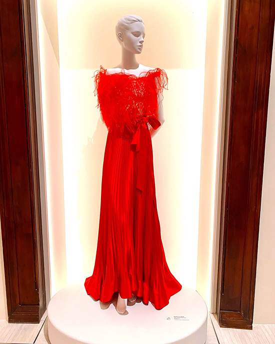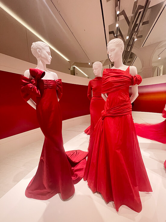 On a cool morning in Rome, tourists congregated around the popular Spanish steps while others waited nearby at PM 23 for the doors to open. Featured within was designer Valentino Garavani’s Orizzonti Rosso exhibit with 88 stunning gowns, done in his signature shade of red. The immersive exhibit included equally gorgeous red artwork by artists including Pablo Picasso, Cy Twombly, Mark Rothko, Jean-Michel Basquiat, Damien Hirst, and Irving Penn. Orizzonti Rosso (Red Horizon) was a happy and exuberant celebration of art, fashion, and life.