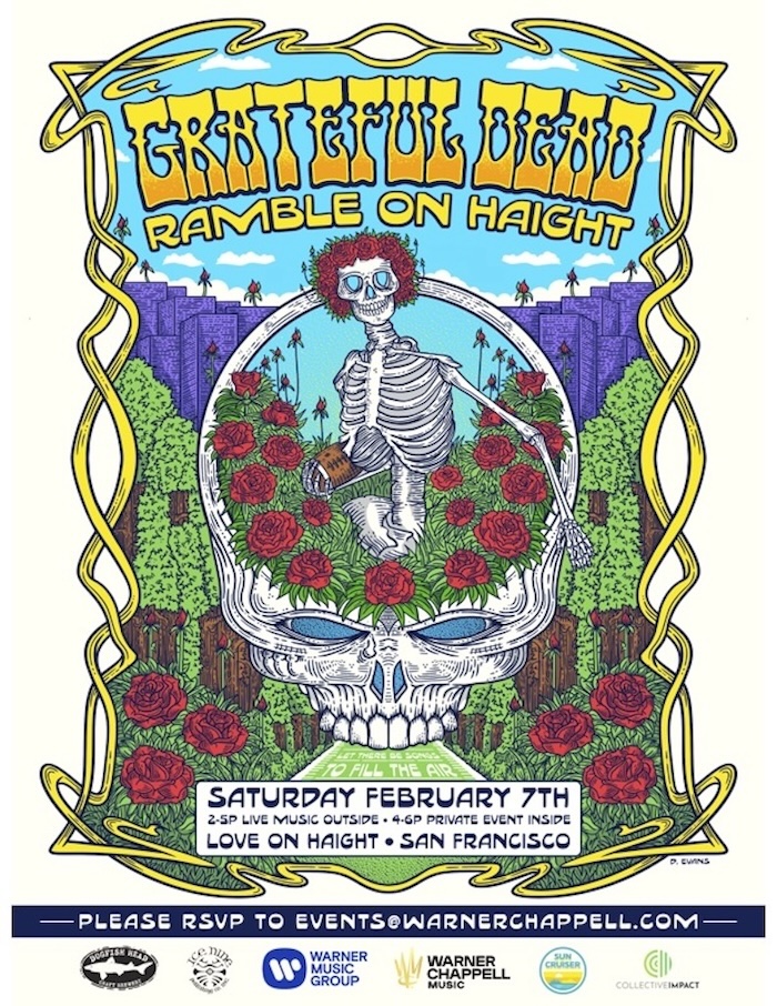 Among the parties and events during Super Bowl weekend in San Francisco this past Saturday, Warner Music Group collaborated on a lively pop-up celebrating the music of the Grateful Dead on their home turf, in the heart of Haight-Ashbury. It was inspired by Bob Weir’s quote “I believe it’s the music that’s going to bring this country together.” The team sought to celebrate the unifying power of music during a weekend when all eyes and ears were on San Francisco.