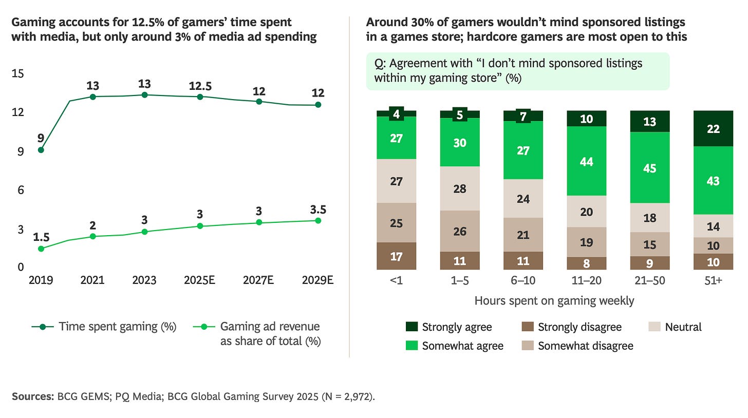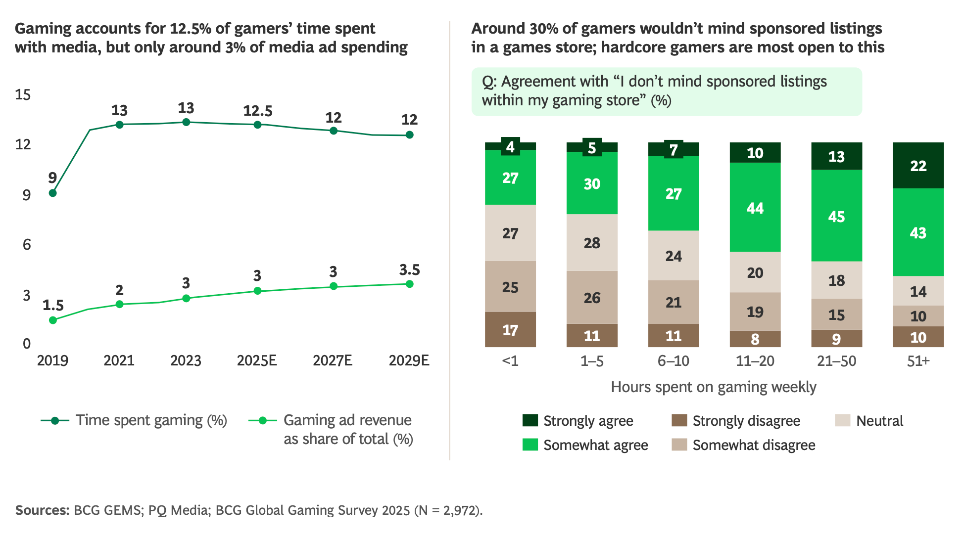 Although games account for 12.5% of total media spent by gamers, advertising spend in games represents only 3% of total media ad spending.