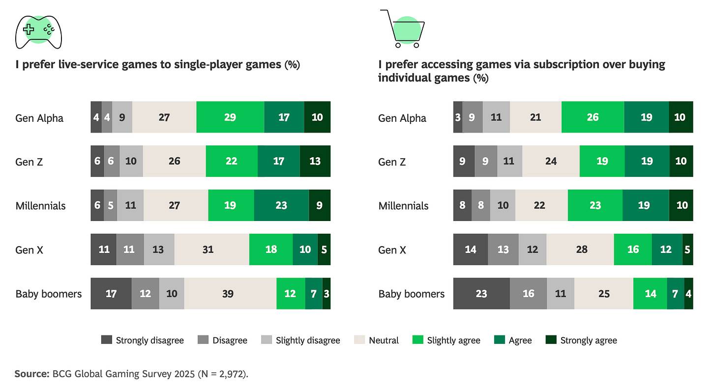 According to BCG, F2P games remain the most cost-effective form of entertainment when measured by cost per hour. It’s odd that vertical video services (TikTok being the clearest example), which are completely free, are not included here.