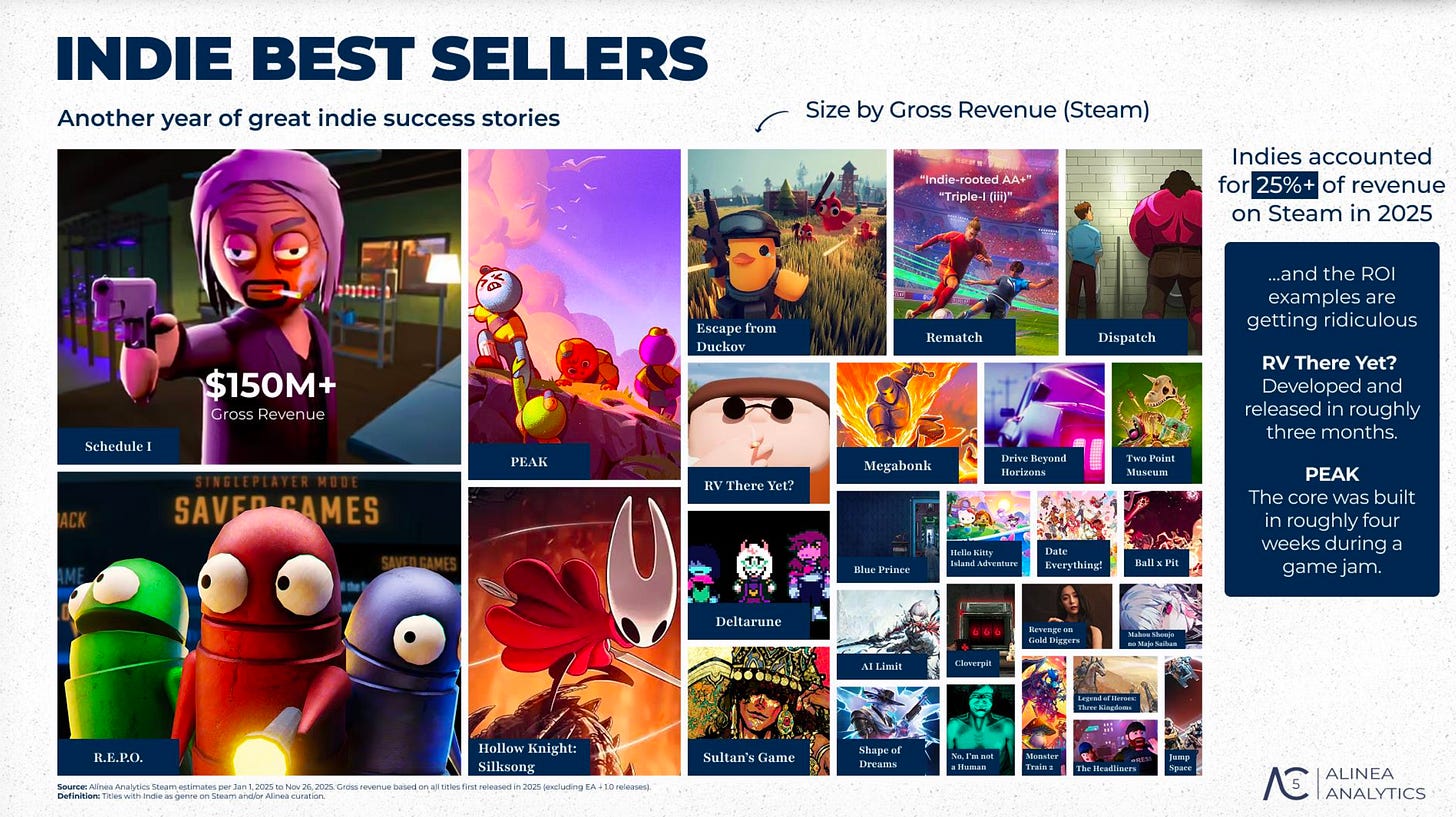 Indie games will account for 25%+ of total Steam revenue by the end of 2025.