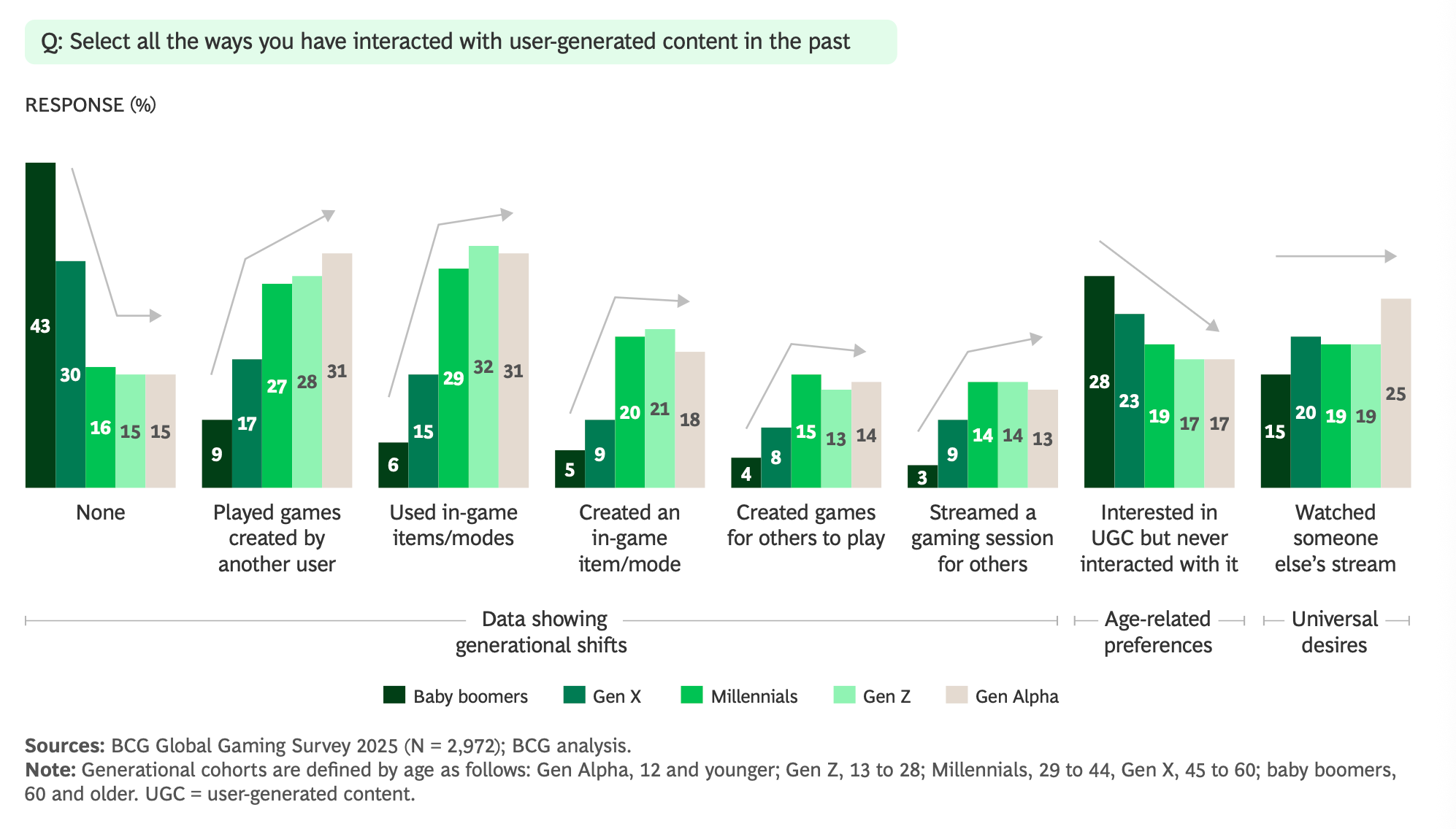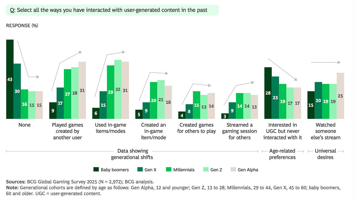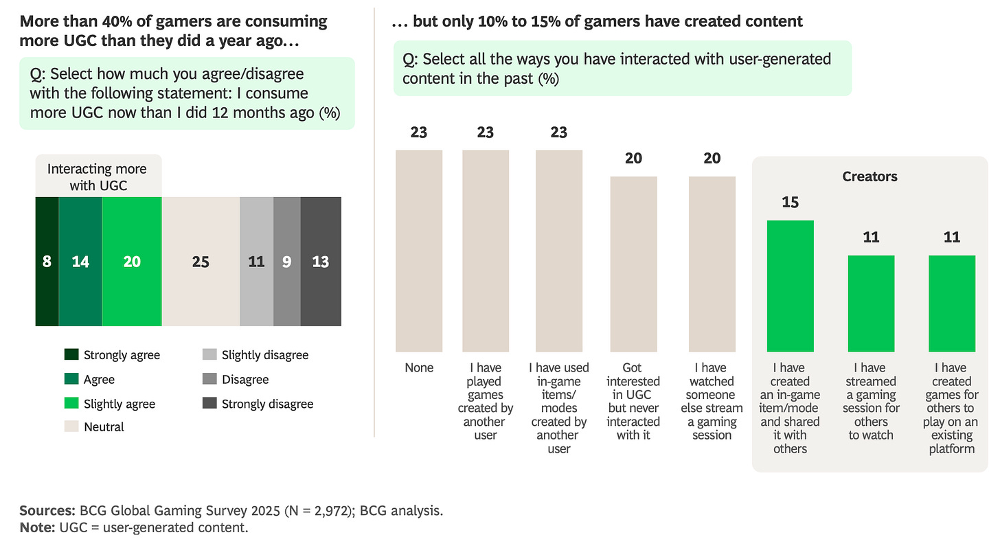 More than 40% of players said they interacted more with UGC over the past year. That said, 33% (almost as many) reported interacting with UGC less.