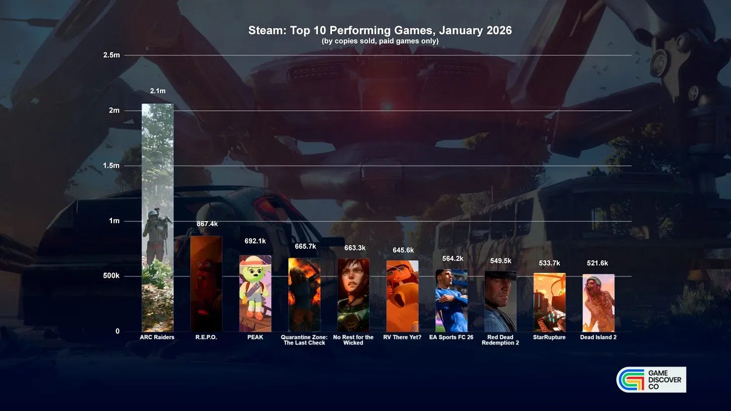 GameDiscoverCo: Top Sellers on Steam and Consoles in January 2026