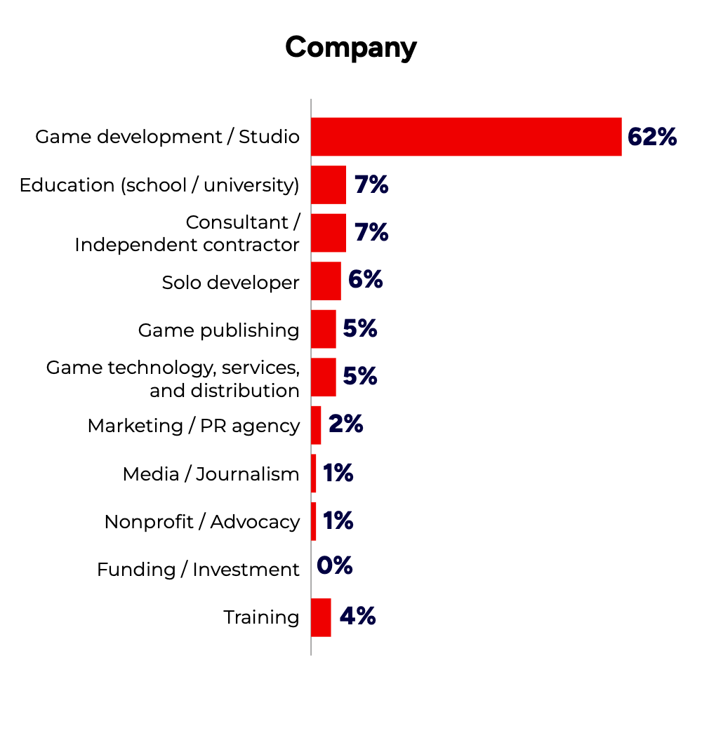 62% of respondents work at game studios.