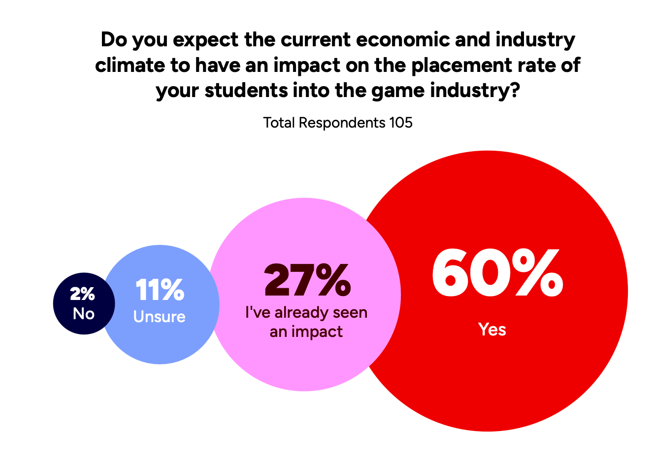 Among students in game-related programs, 47% noticed changes over the past year.