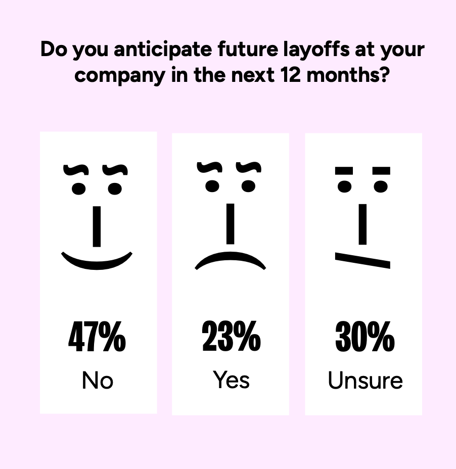 Despite the situation, 47% of respondents remain optimistic and believe there will be no further layoffs at their companies.